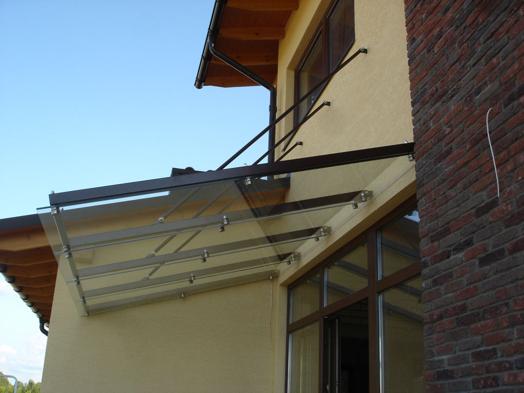 - стеклянные козырьки на металлическом каркасе