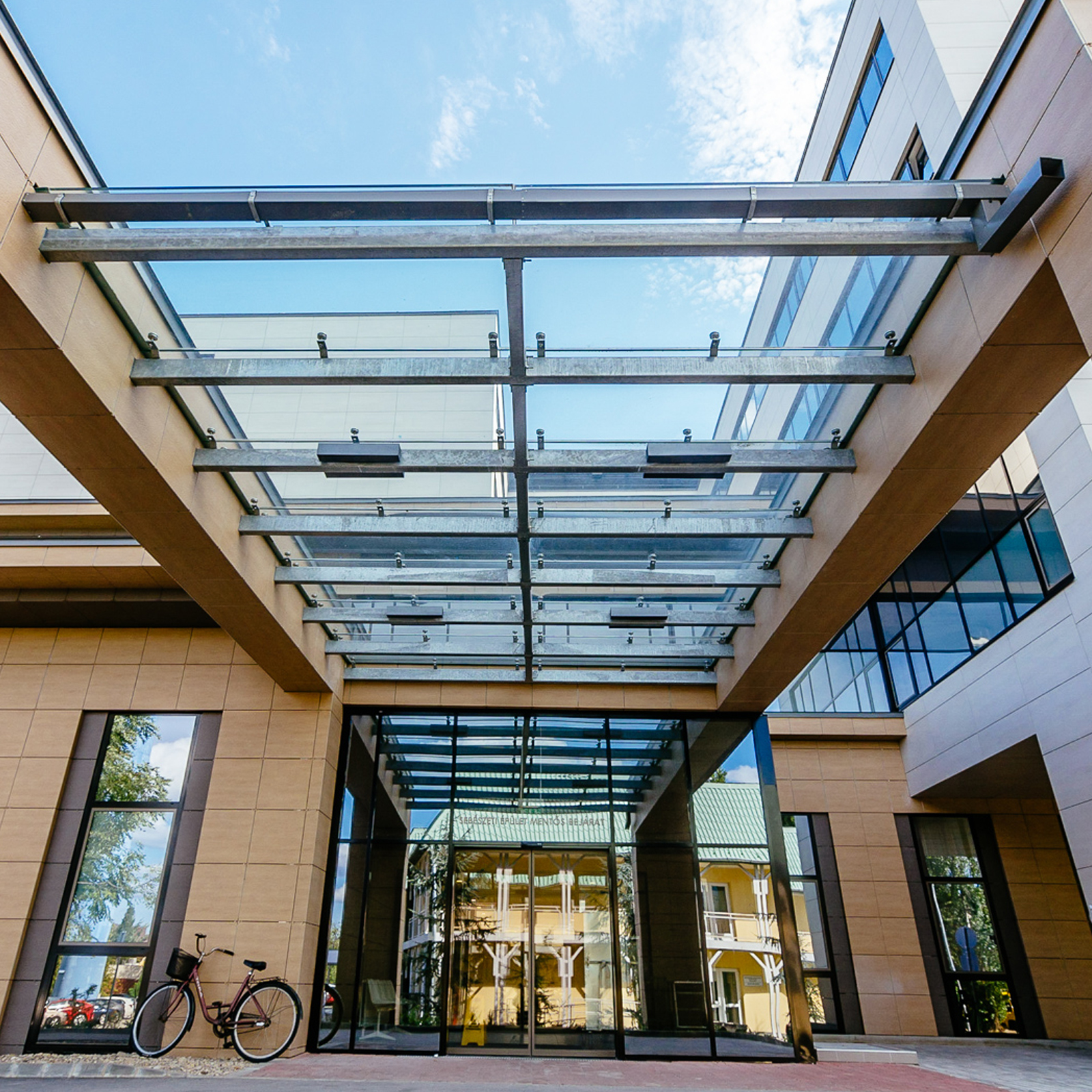 - цельностеклянные козырьки на растяжках (вантах)
