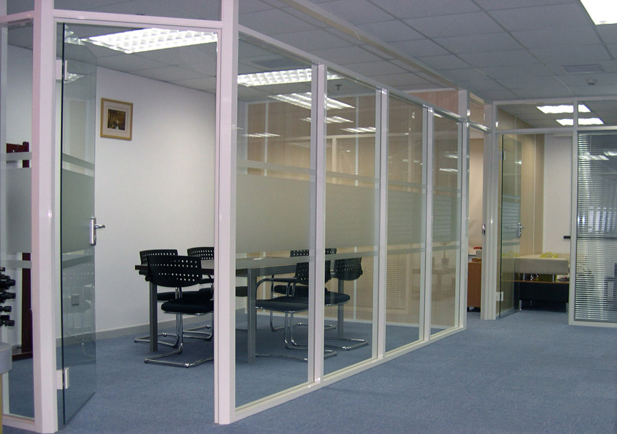 Стекла таких перегородок крепятся в алюминиевом каркасе. Для обеспечения повышенной (улучшенной) шумоизоляции возможно двухрядное светопрозрачное остекление.